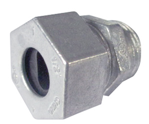 Used to connect underground feeder cable to a weatherproof box with a threaded hub. Use for 14/2 and 12/2 cable.